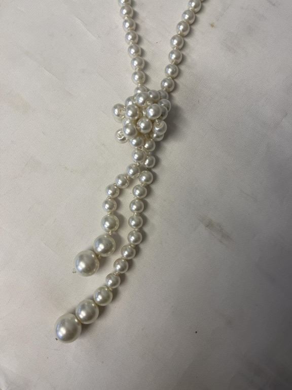 EXTRA LENGTH HAND KNOTTED PEARLS TASSEL STYLE NECKLACE 24" LENGTH