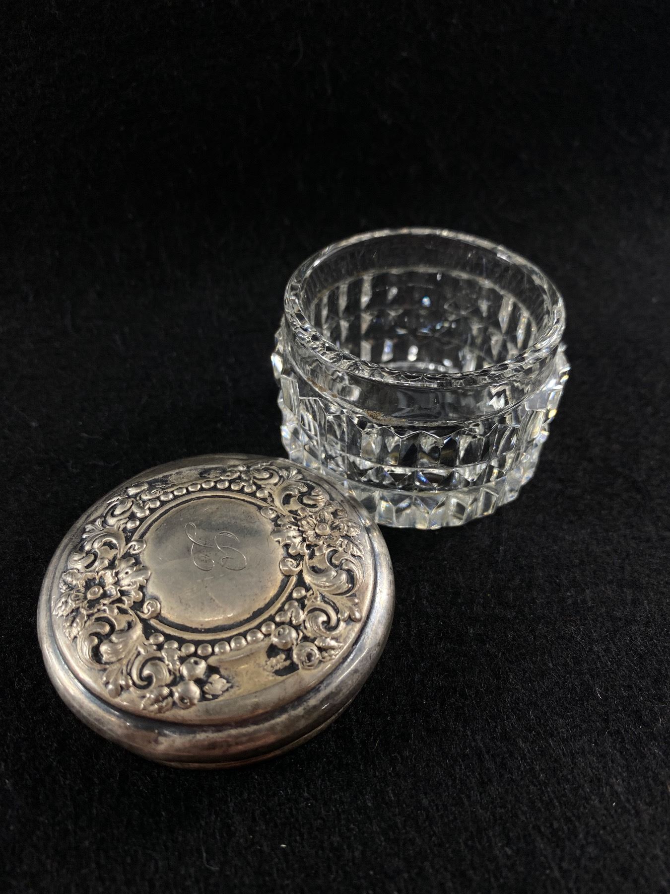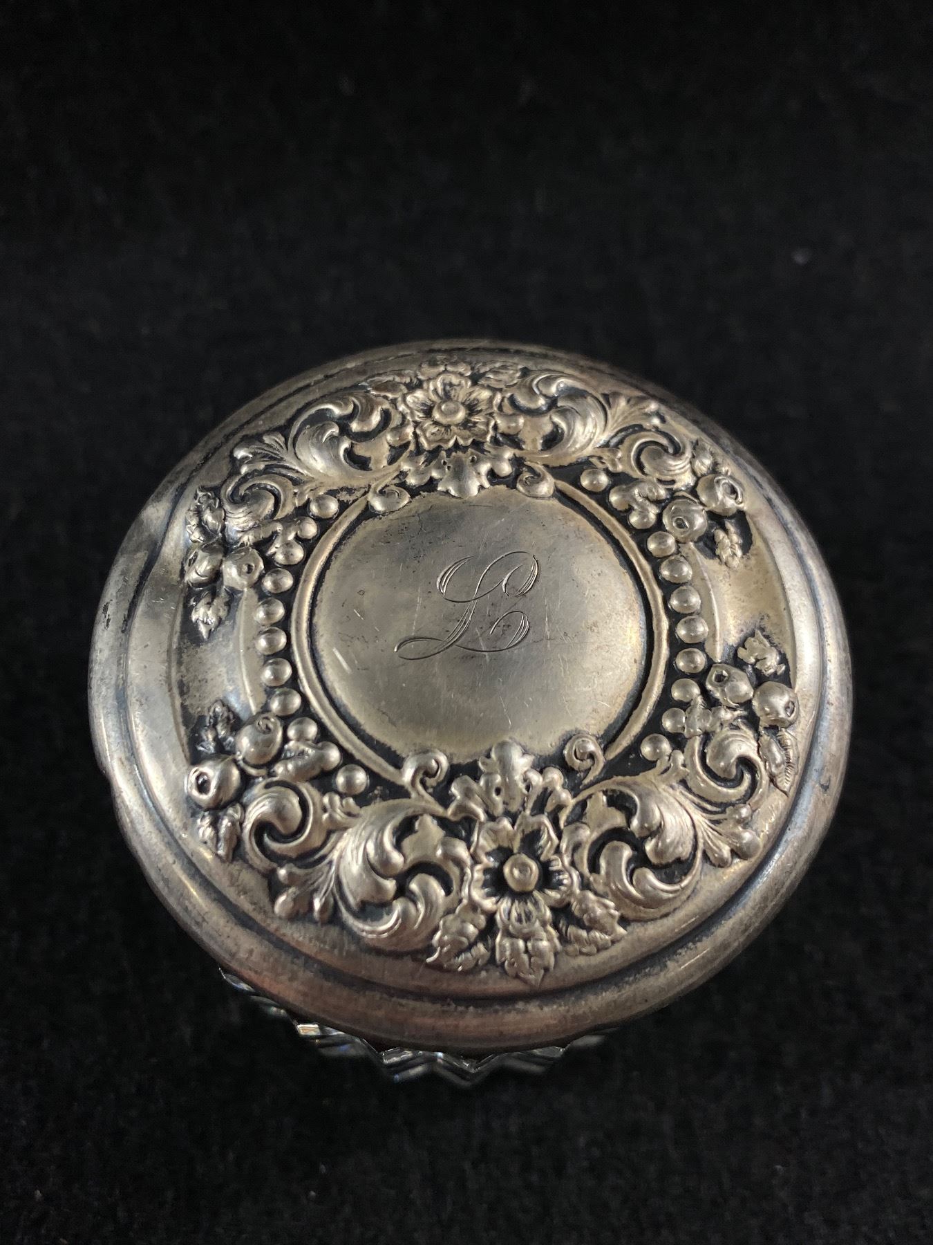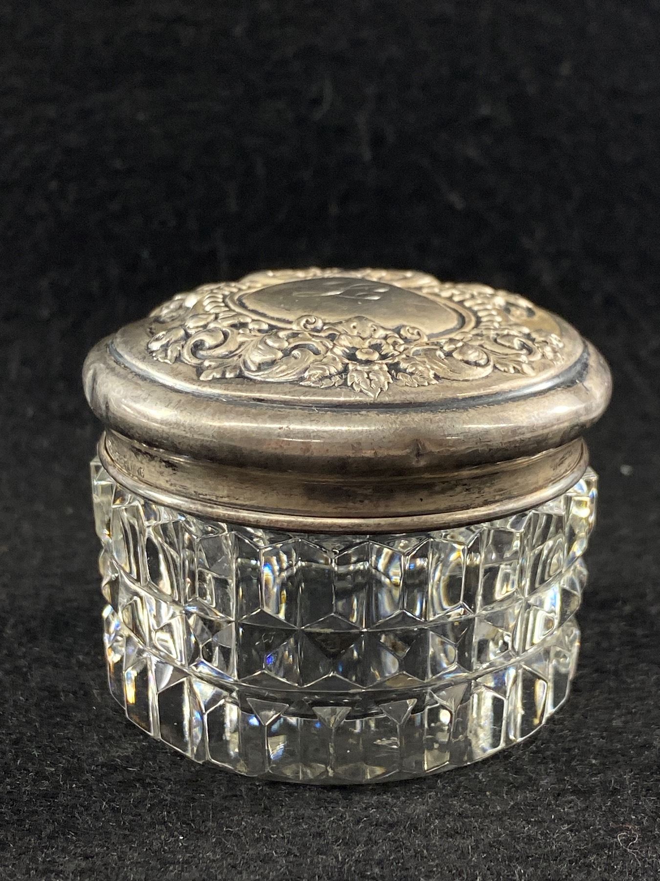 Early 1900's Victorian Dresser Jar w/ Sterling Embossed Top