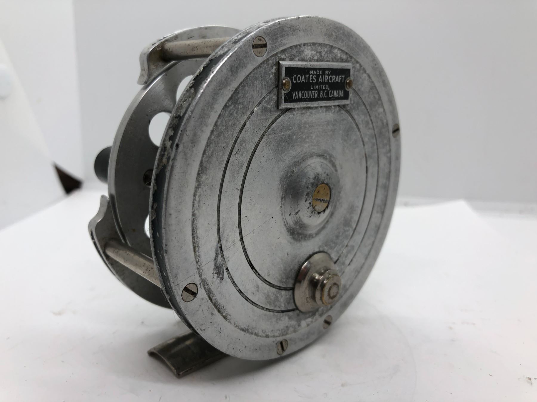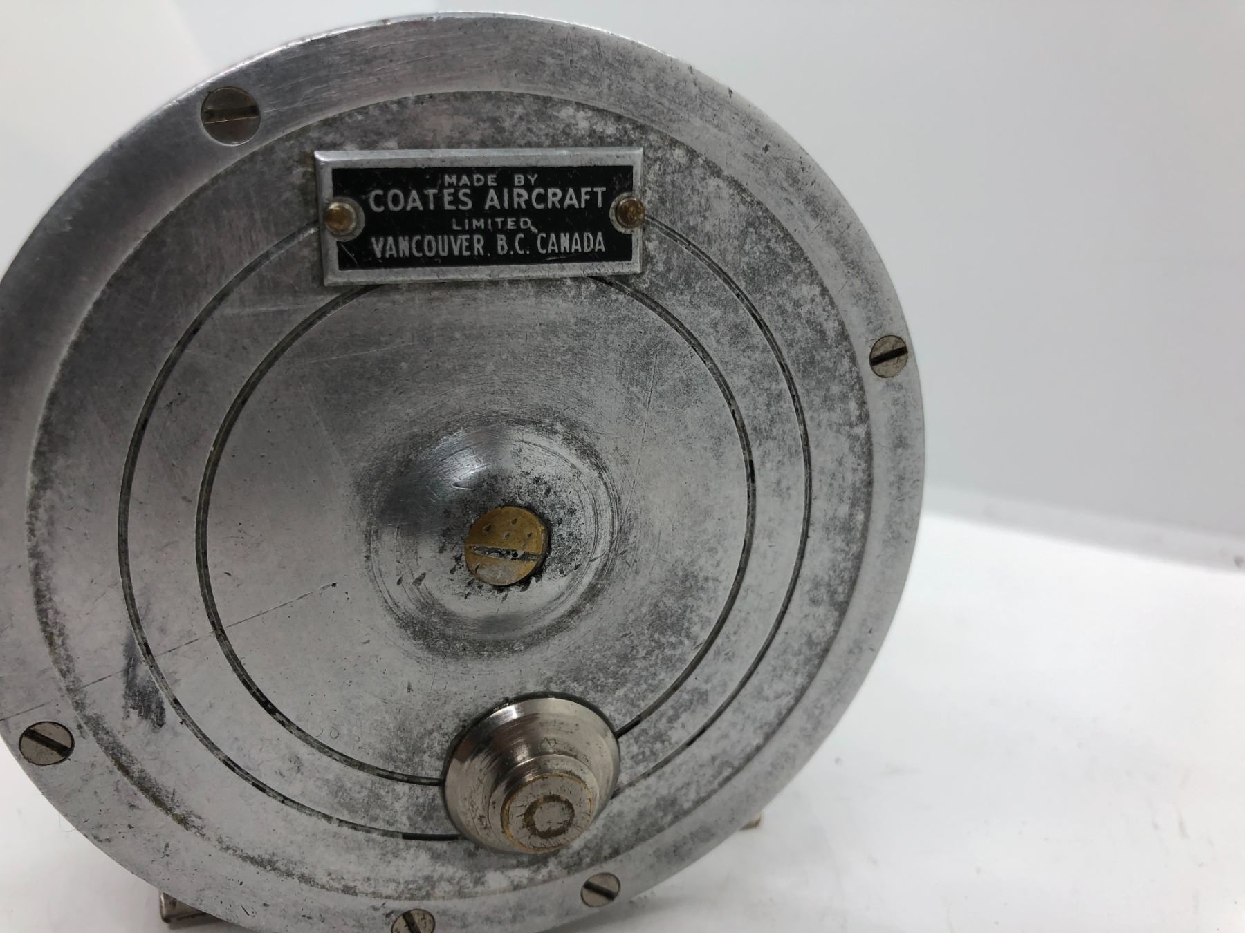 Early 1900's aluminum crafted center-pin salmon reel Made by Coates Aircraft Ltd. Vancouver BC