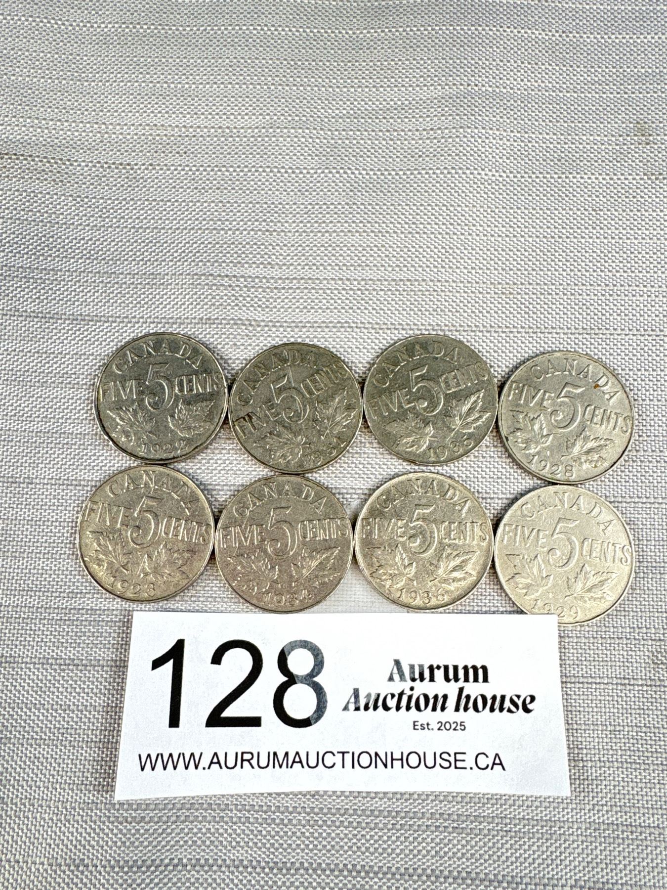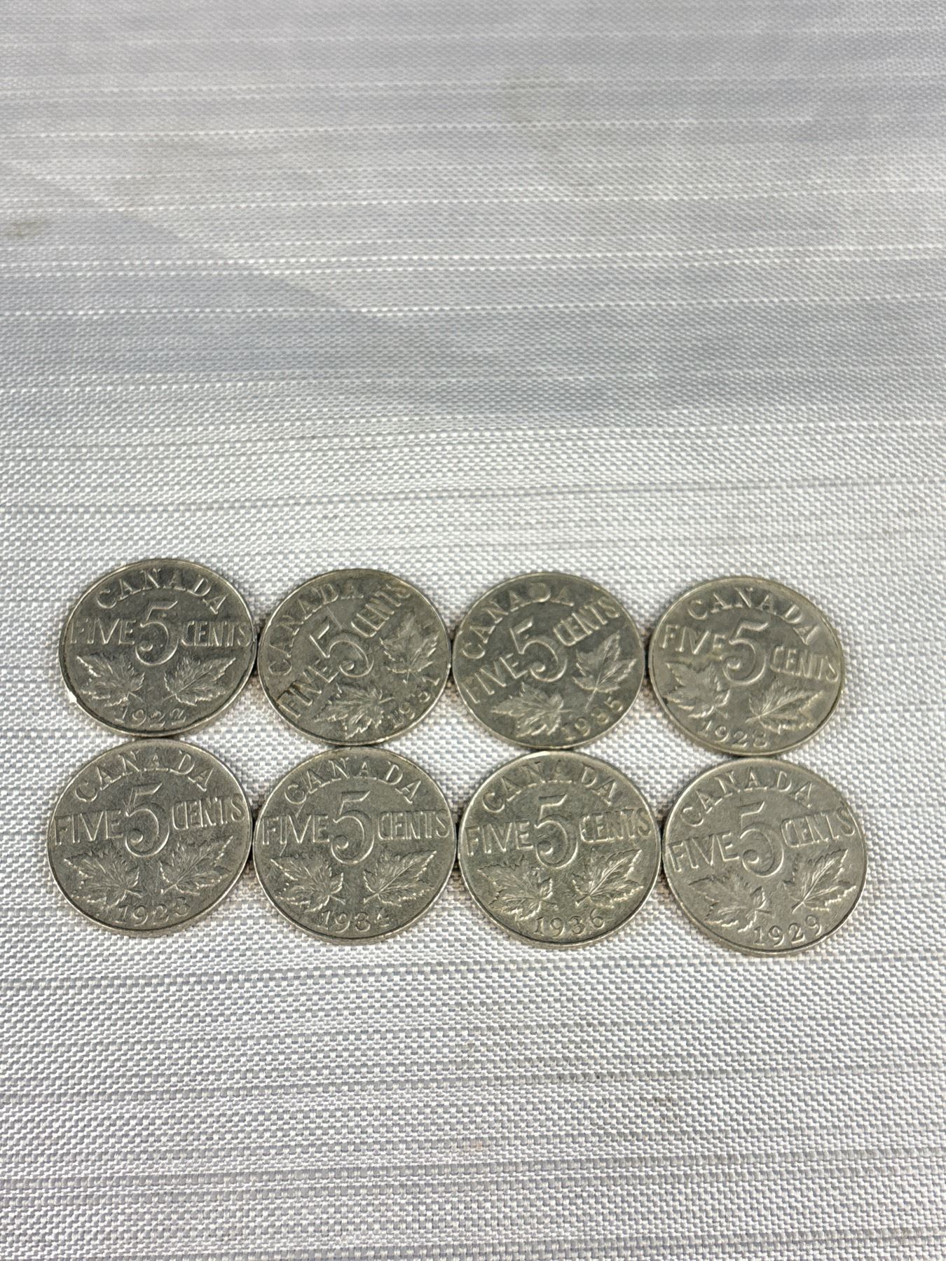 Early Canada 5 Cent Coins, 22, 23, 28, 29, 31, 34, 35, 36