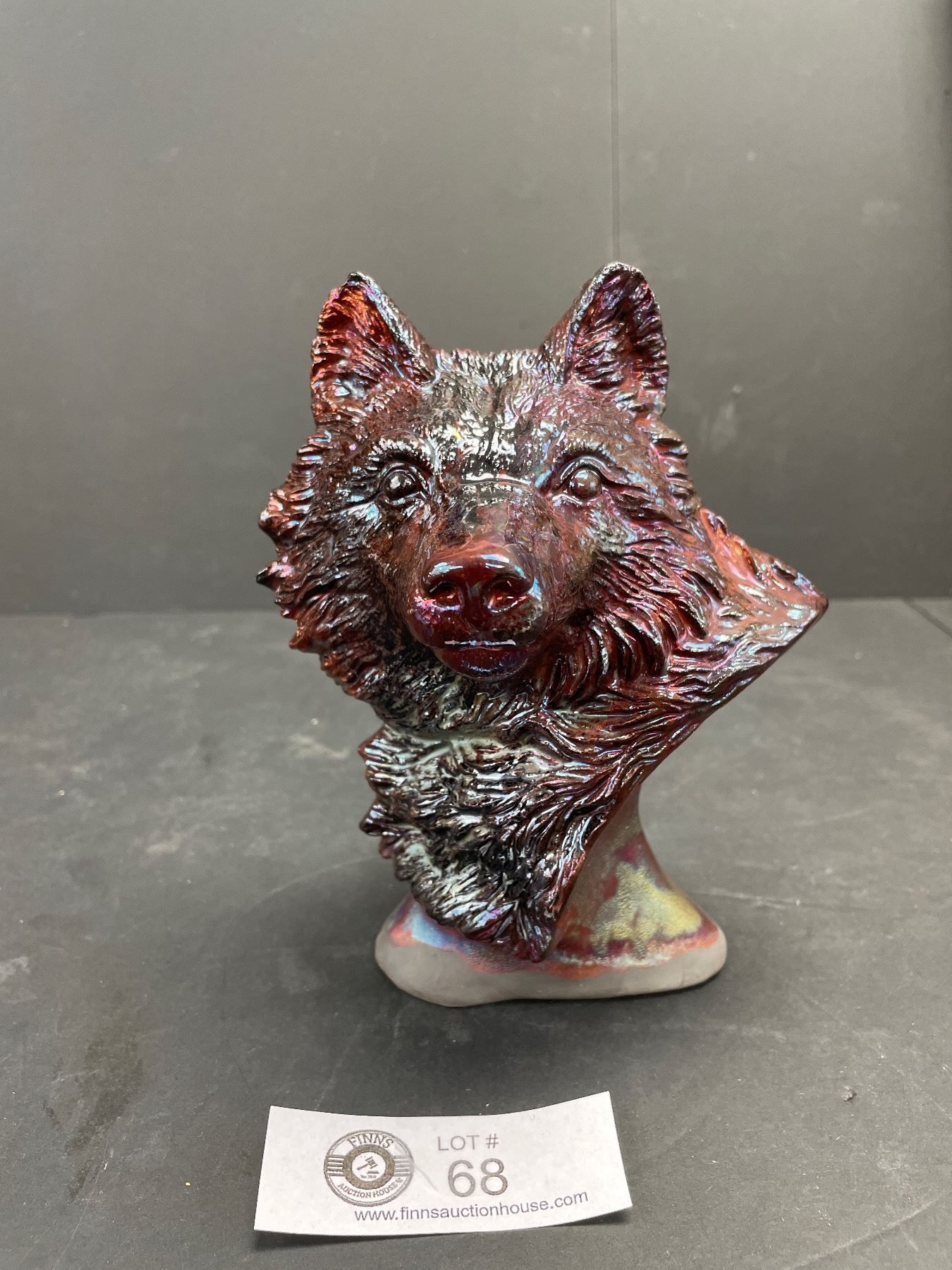 Early Raku Pottery Wolf Bust 6.5" Tall
