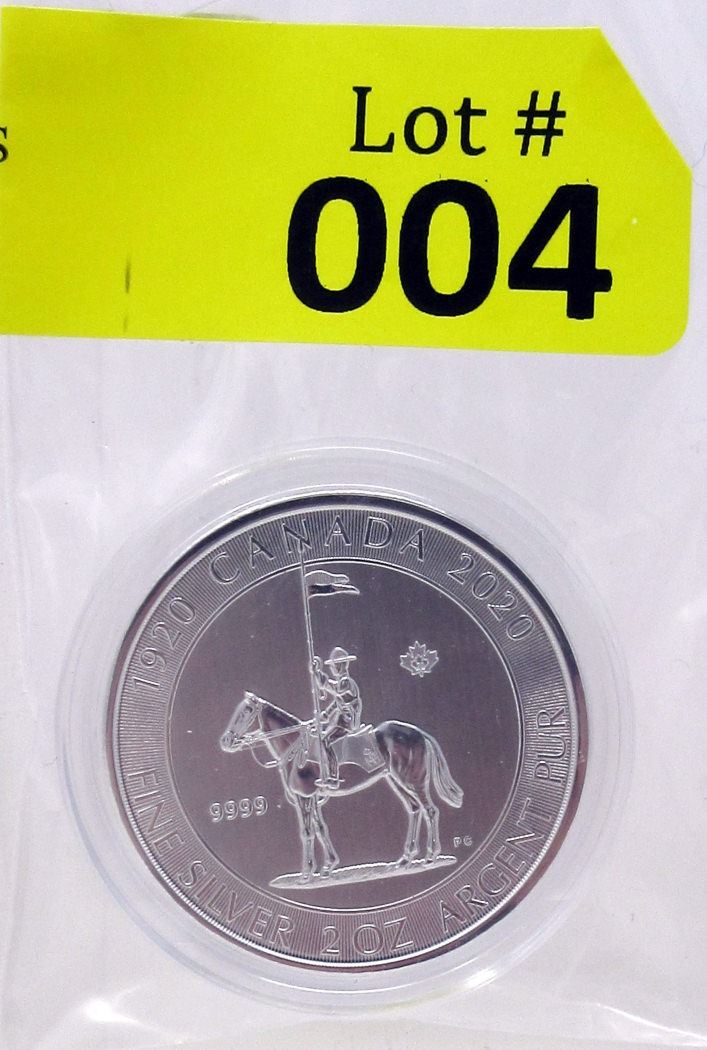 2 Ounces of .9999 fine silver. 1920-2020 Canada $10 Mountie coin. Tax exempt.