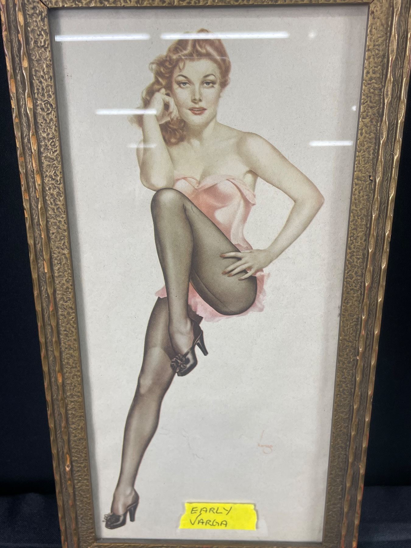 Early Varga Framed Pin-Up Girl. Approx. 12 1/2" x 6 1/2"