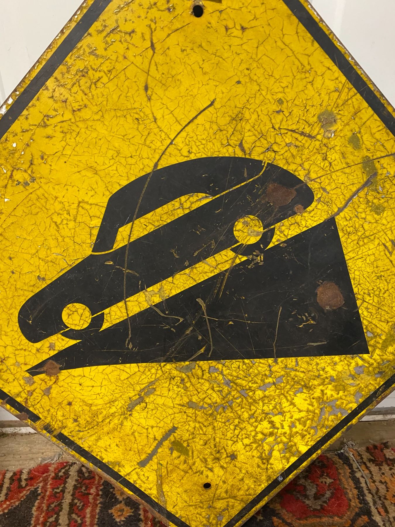 Early Vintage Yellow Steel Road Sign Hillvector Image, Original Reflective Paint