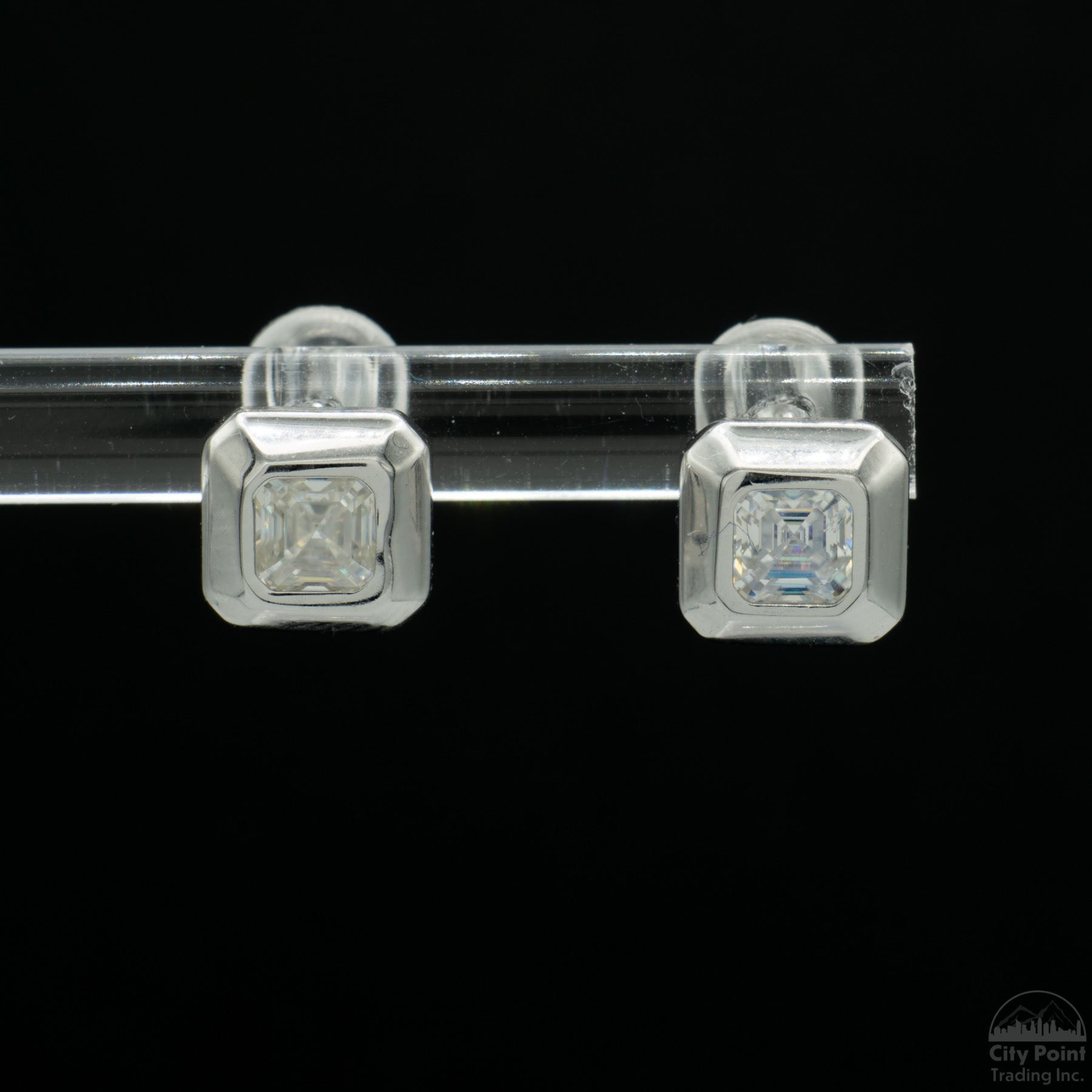 Earrings, 0.4 Carat Asscher Cut Moissanite, Platinum-Plated Sterling Silver