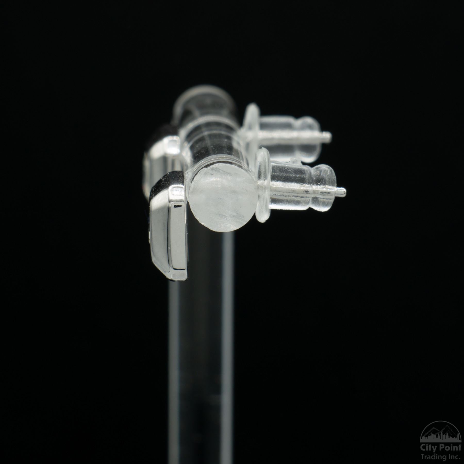 One pair of stamped S925 platinum-plated sterling silver earrings weighing 1.07 grams, each featuring a single Asscher cut moissanite, approximately 0.40 carat. Condition is new. Comes with a box, pouch, and display box.