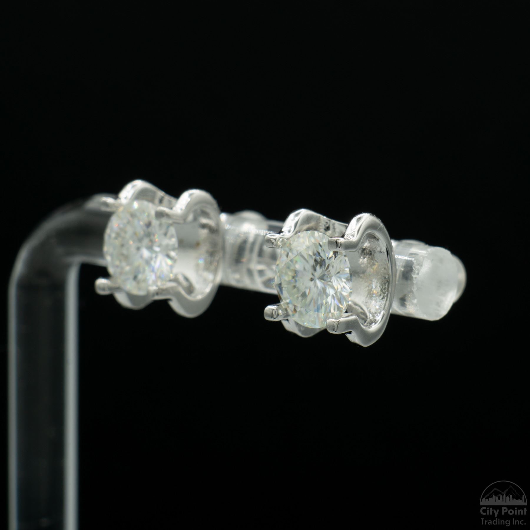 Earrings, 1 Carat Round Cut Moissanite, Platinum-Plated Sterling Silver