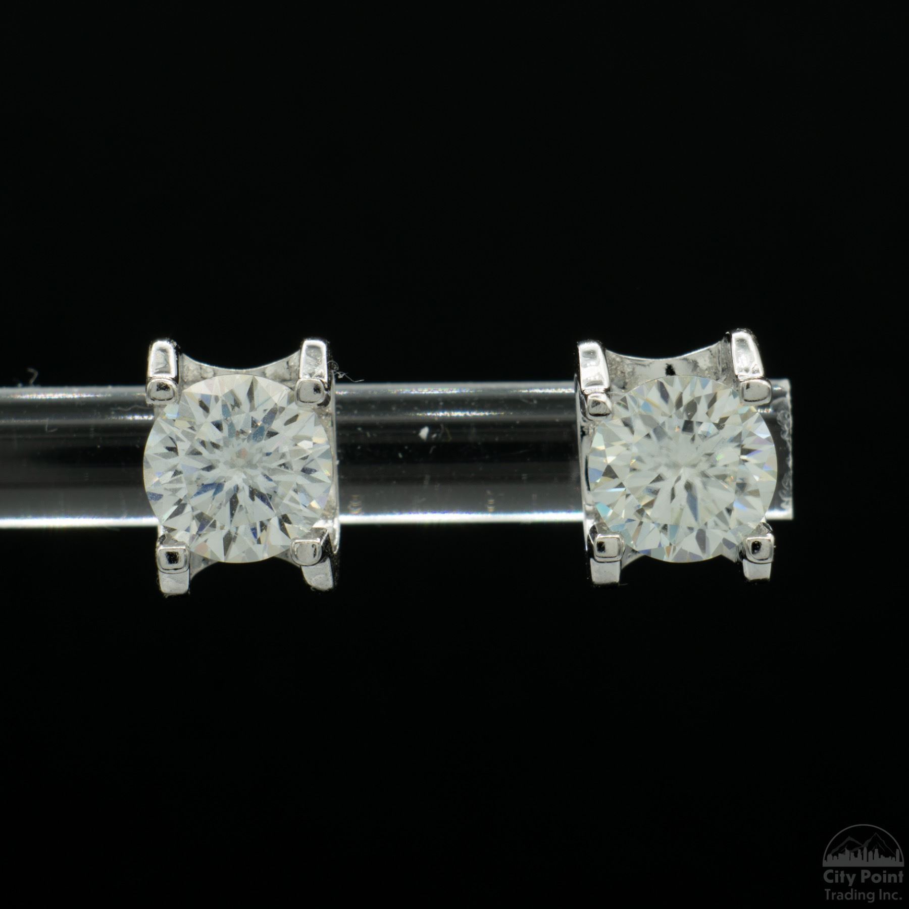 Earrings, 1 Carat Round Cut Moissanite, Platinum-Plated Sterling Silver