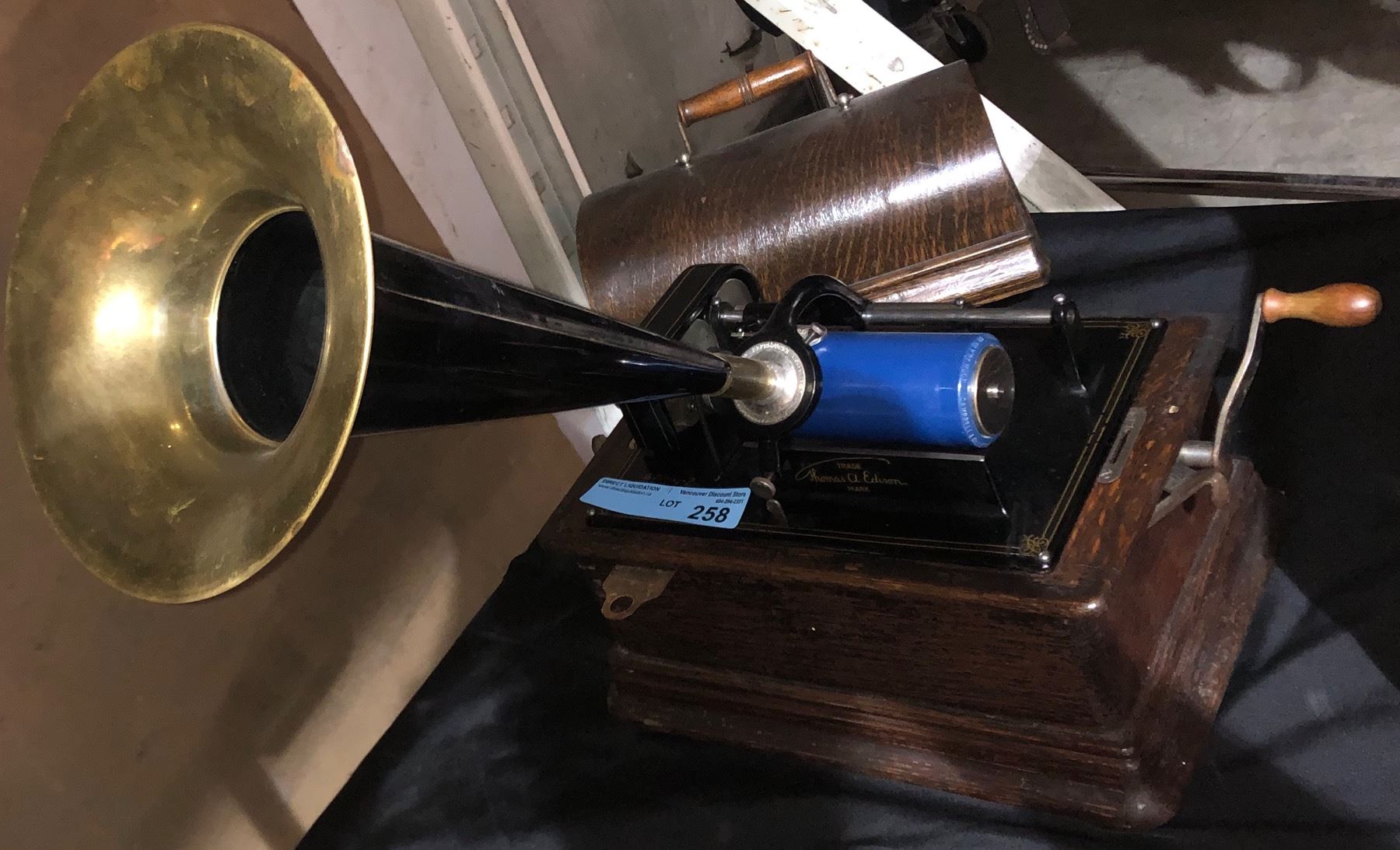 2-speed wax cylinder phonograph. Works with a watch mechanism