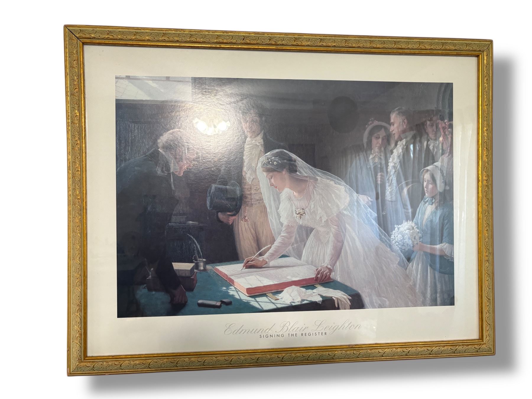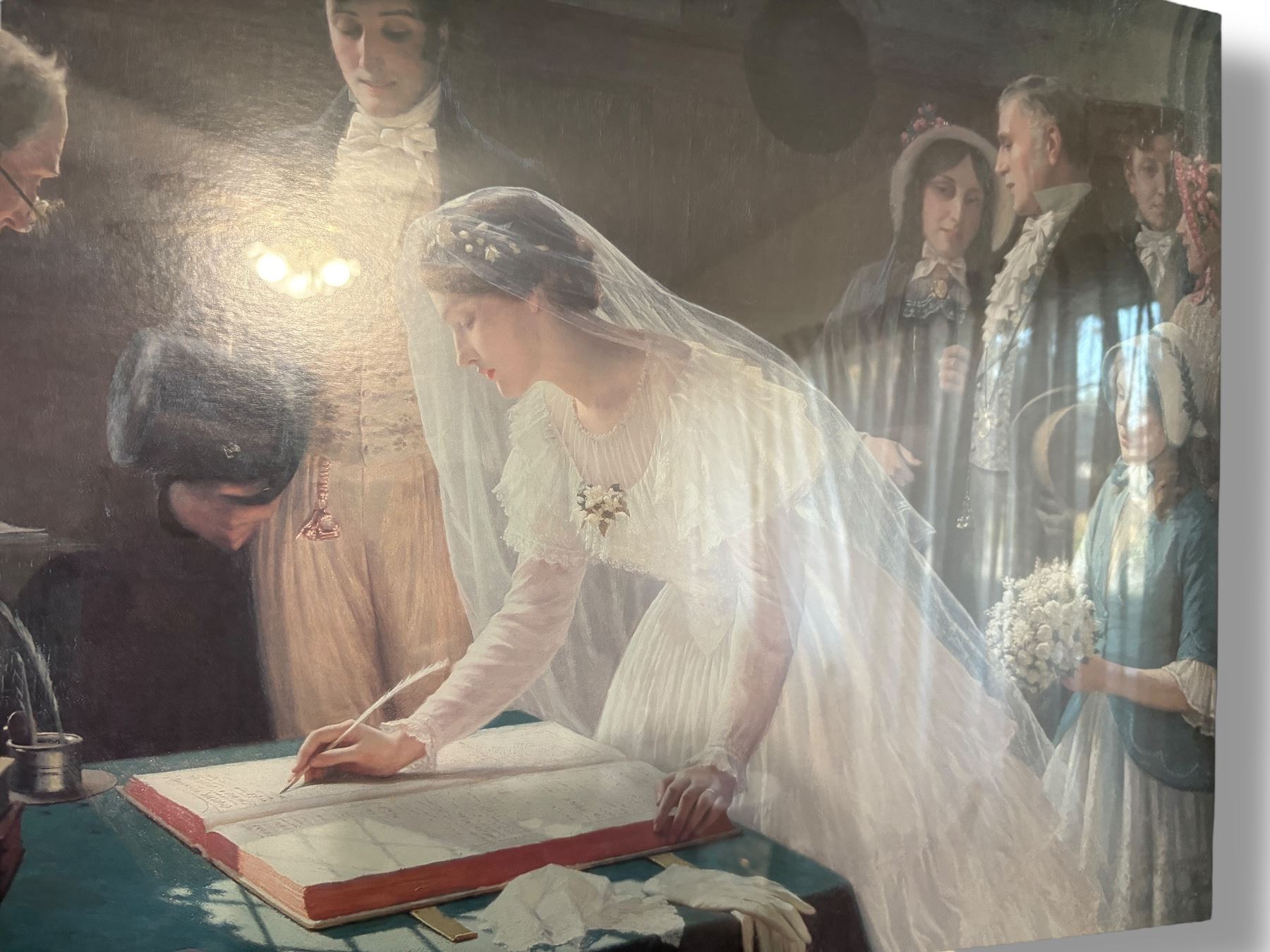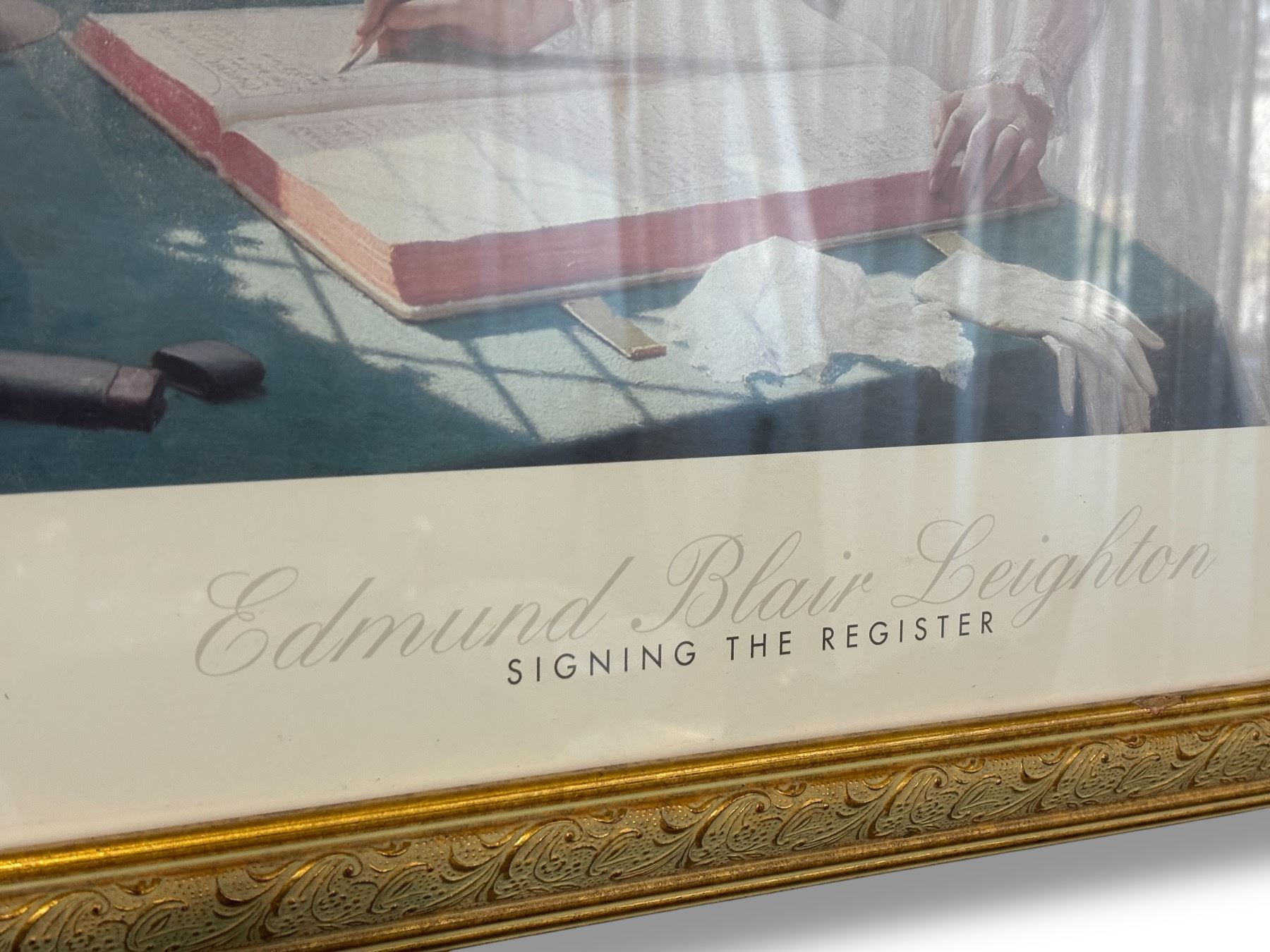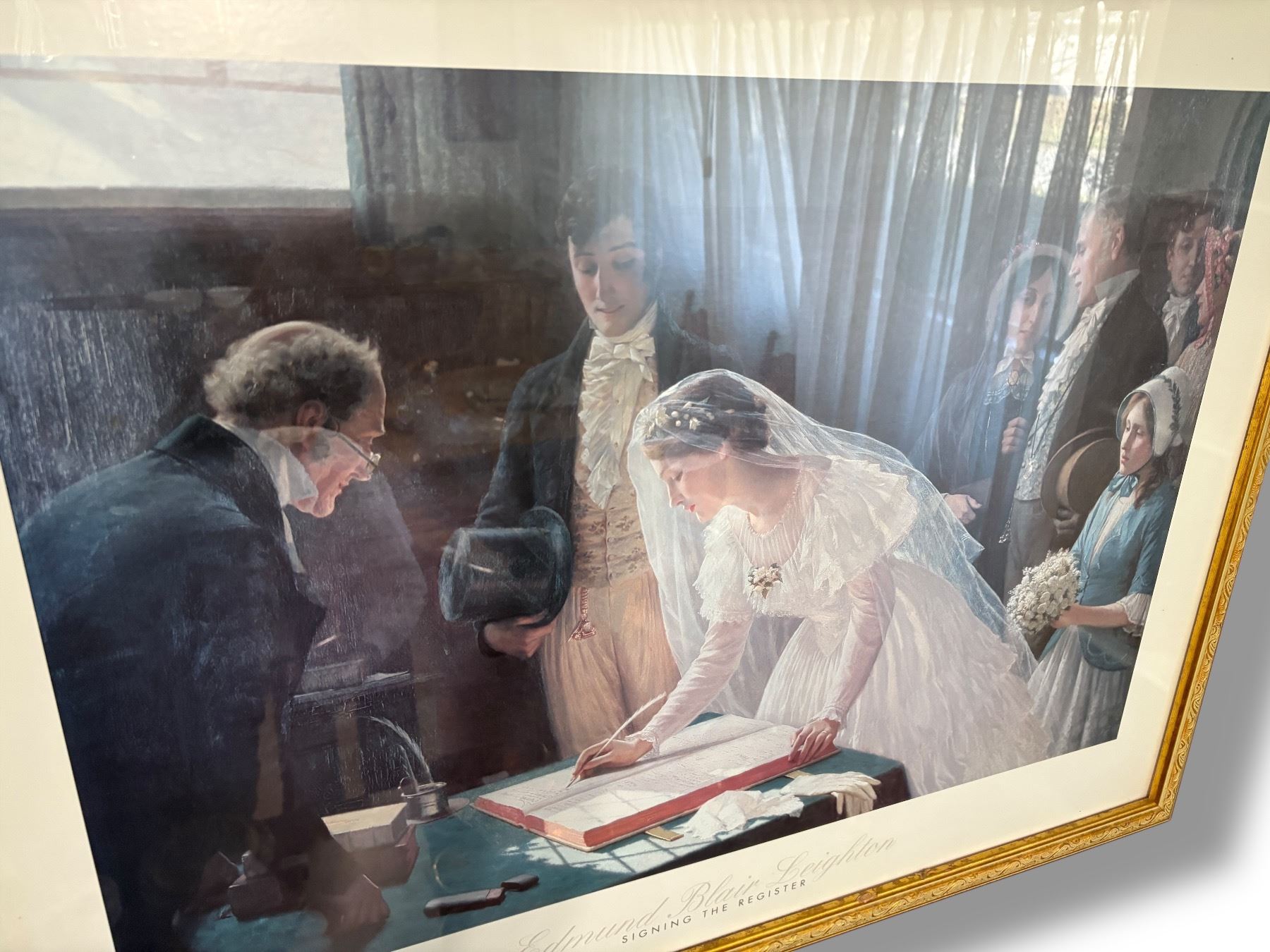 Edmund Blair Leighton Signing The Register framed wall hanging - approx. 34 1/2in x 26 1/2in