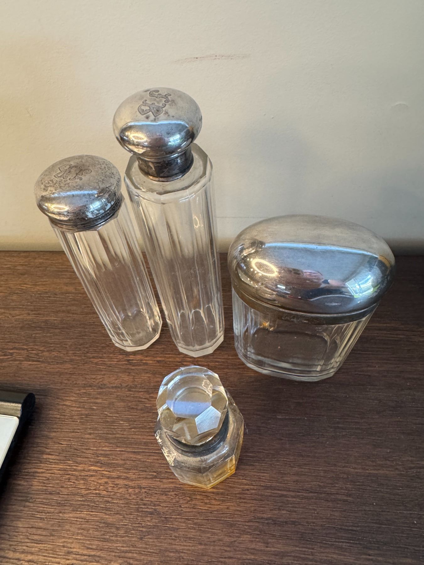 Edwardian hand cut sterling topped travel vanity set if you wanna