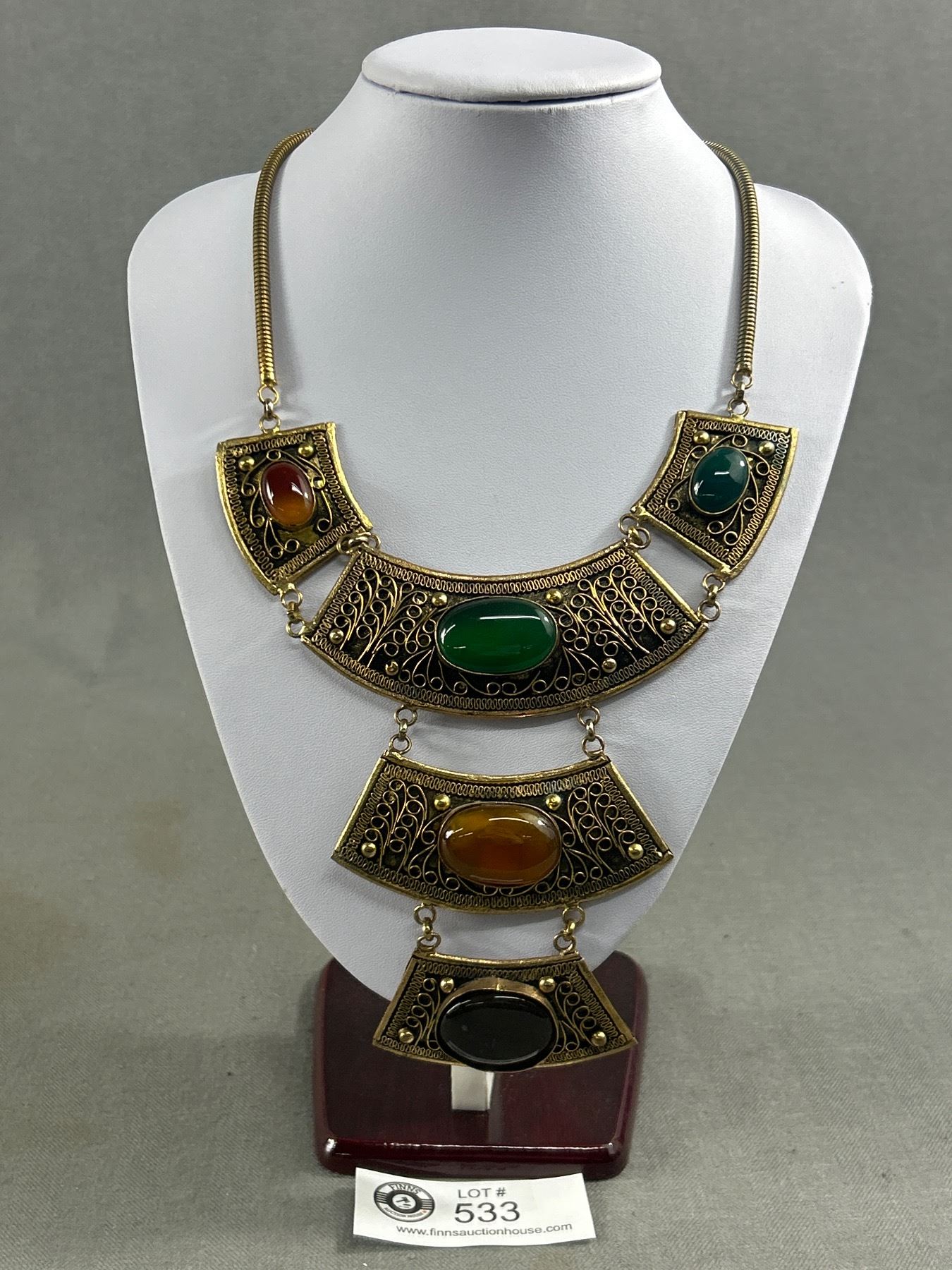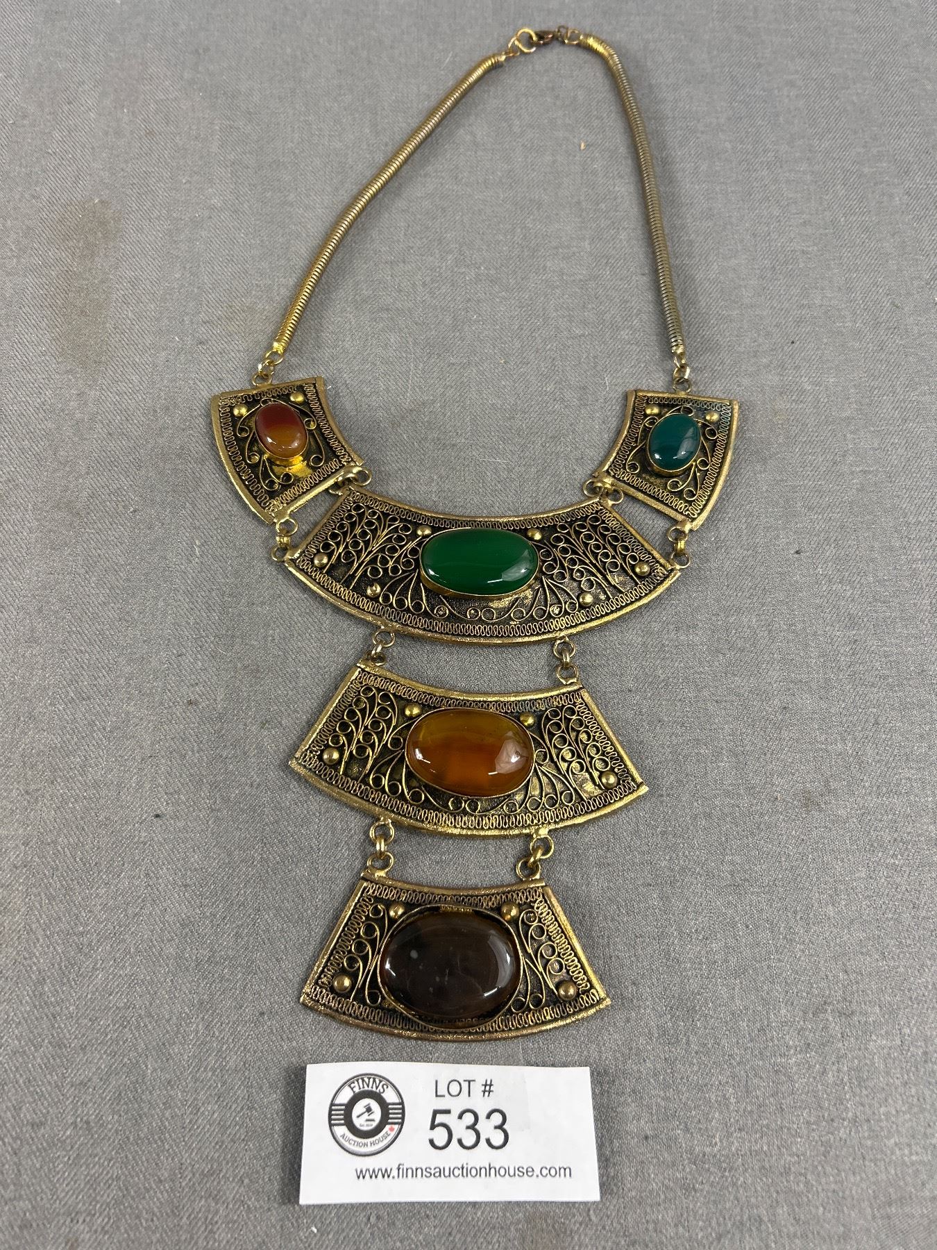 Elaborate Semi Precious Stones Huge Bib Necklace