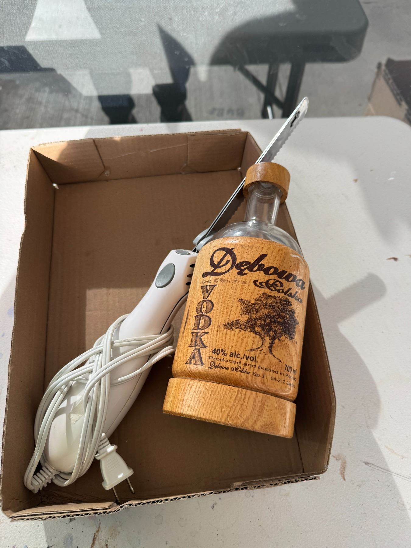 Electric knife and vodka bottle