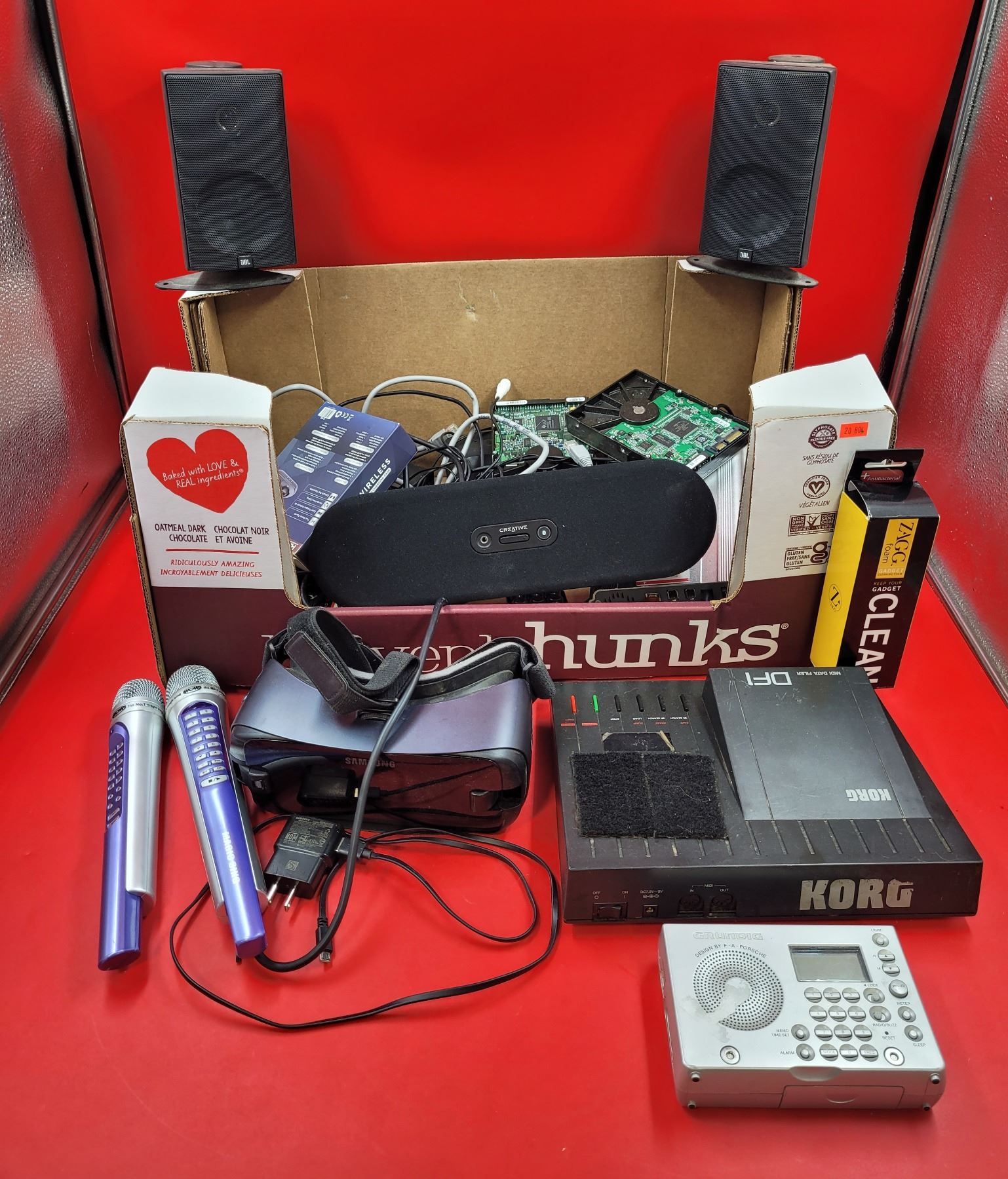 Electronics Lot w/ Speakers, Samsung VR Headset, Microphones, & More