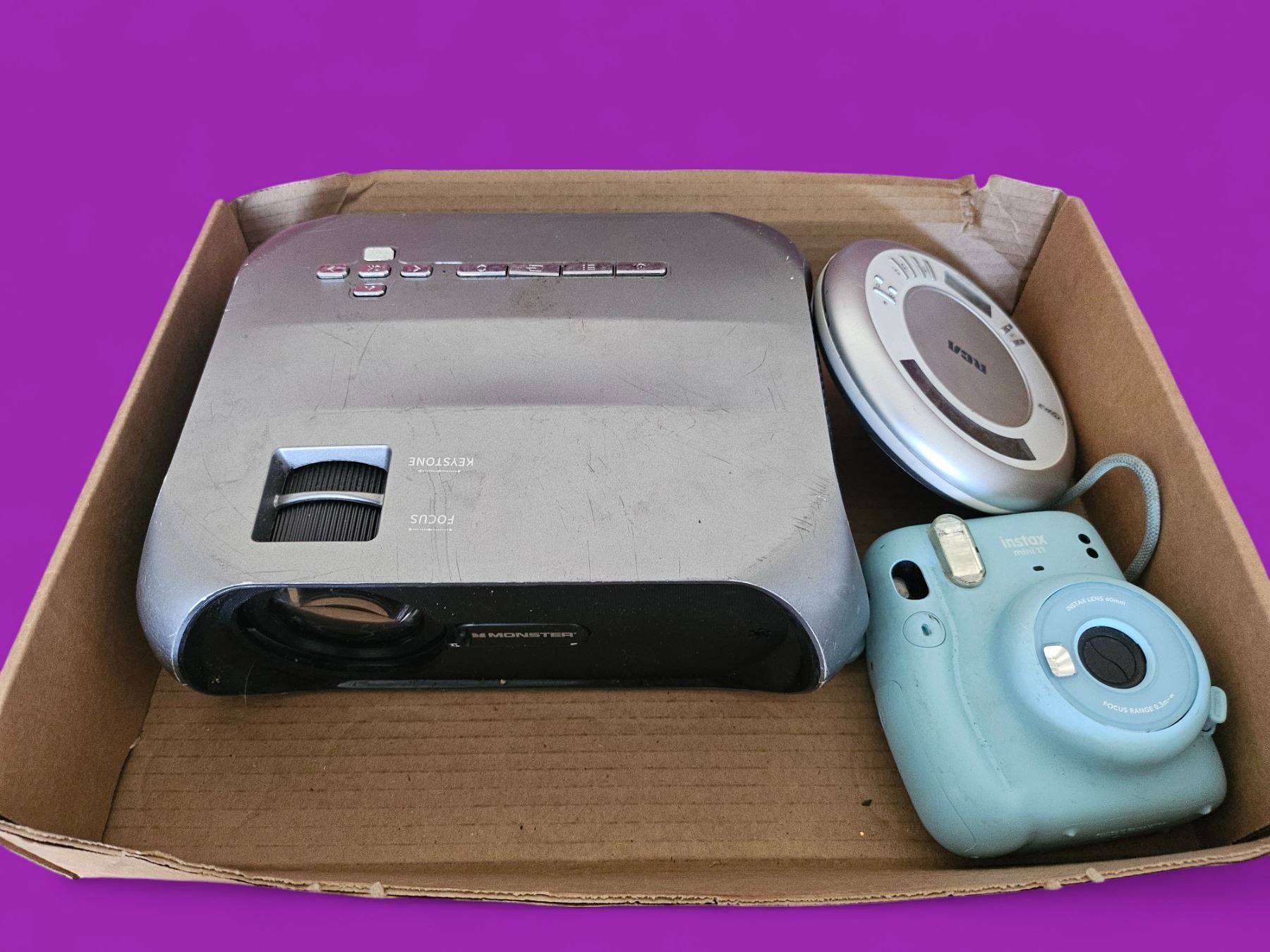 RCA CD Diskman, Intax mini 11, and Monster Video Projector