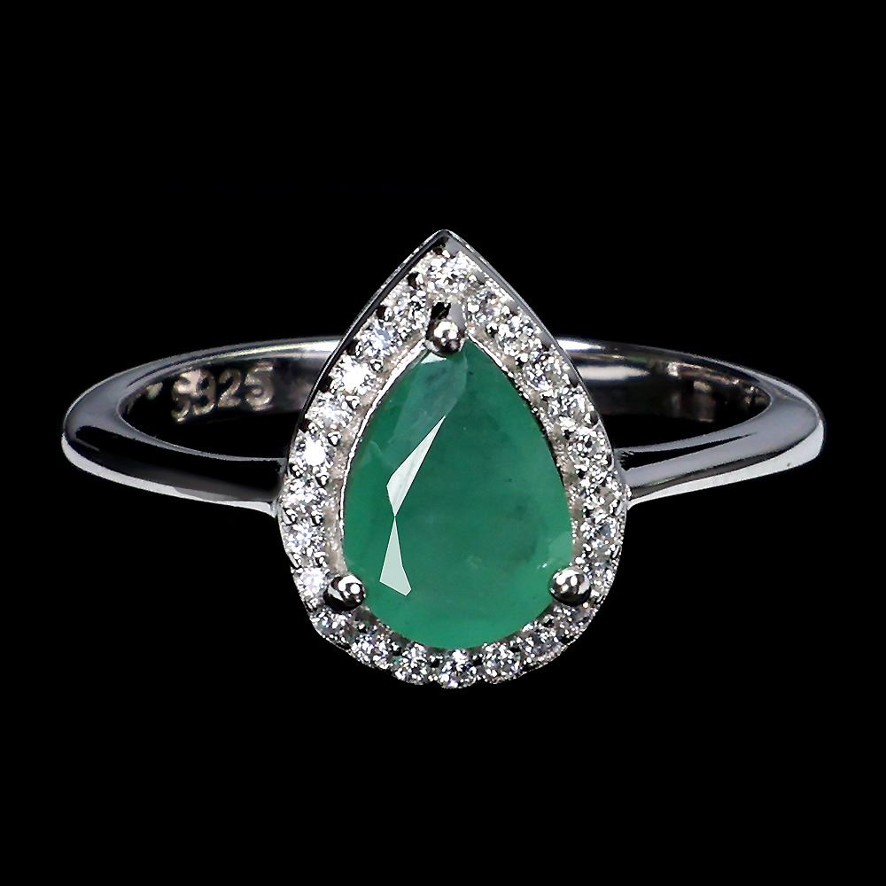 Elegant Emerald Pear Cut Ring in 925 Sterling Silver 14 K White Gold Plated Size 7 - Appraised Replacement Value CAD 529