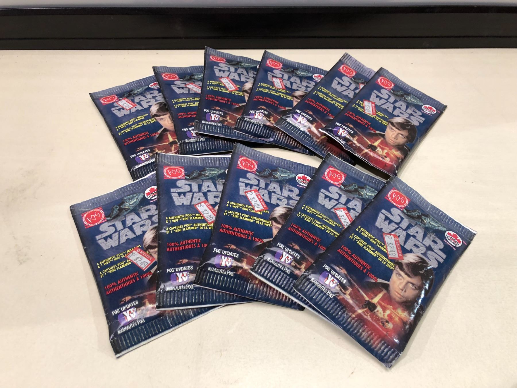 Eleven packs unopen Star Wars collector pogs