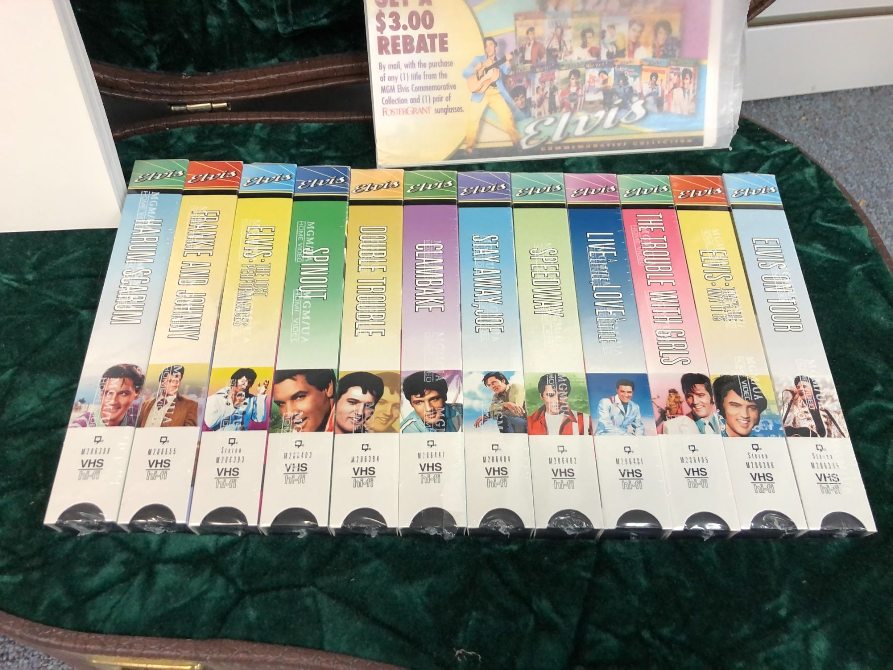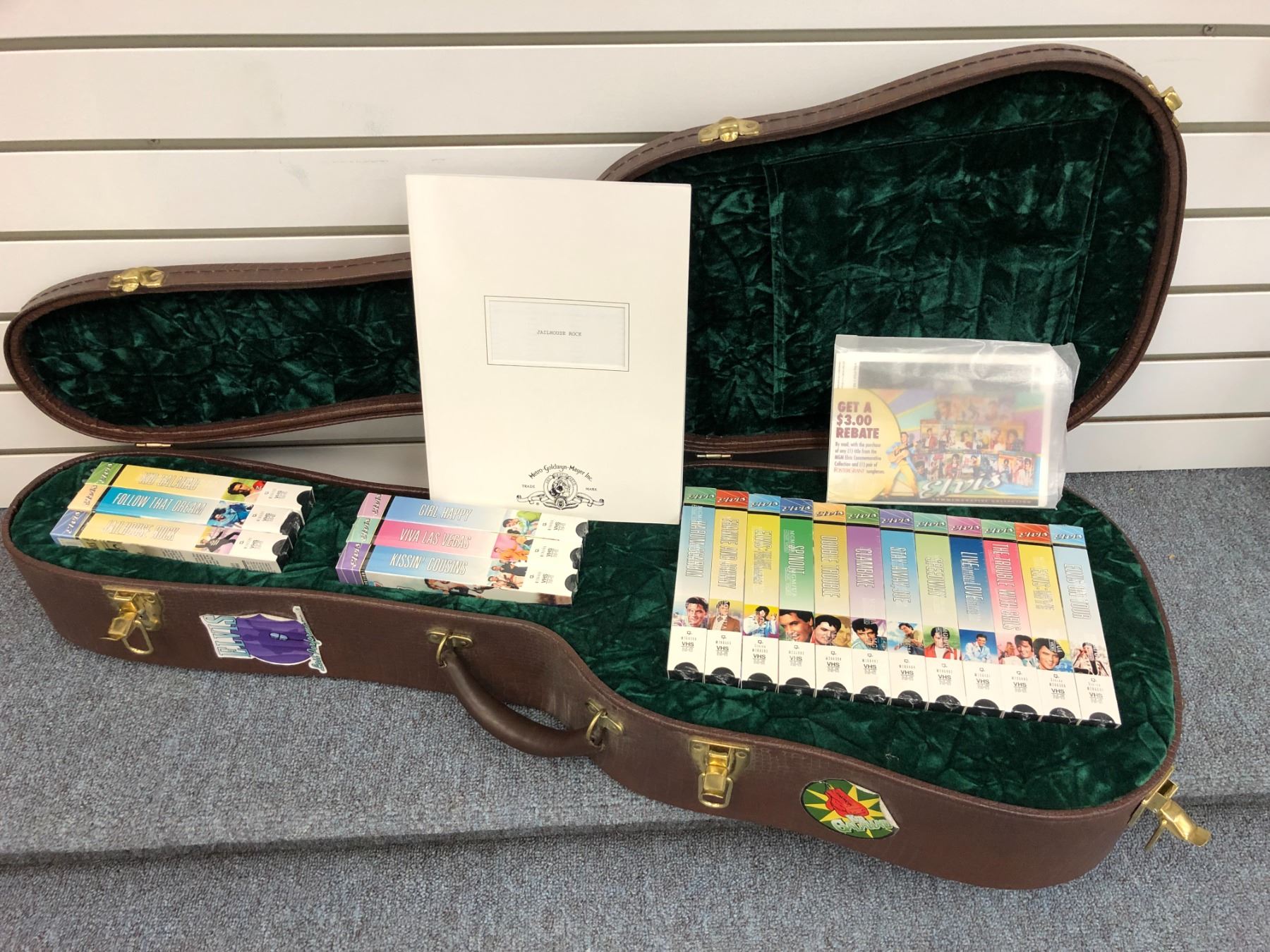 Elvis Presley Commemorative collector's set limited edition #2231/5000 - guitar case collection w/ Jailhouse Rock story & factory sealed VHS movies
