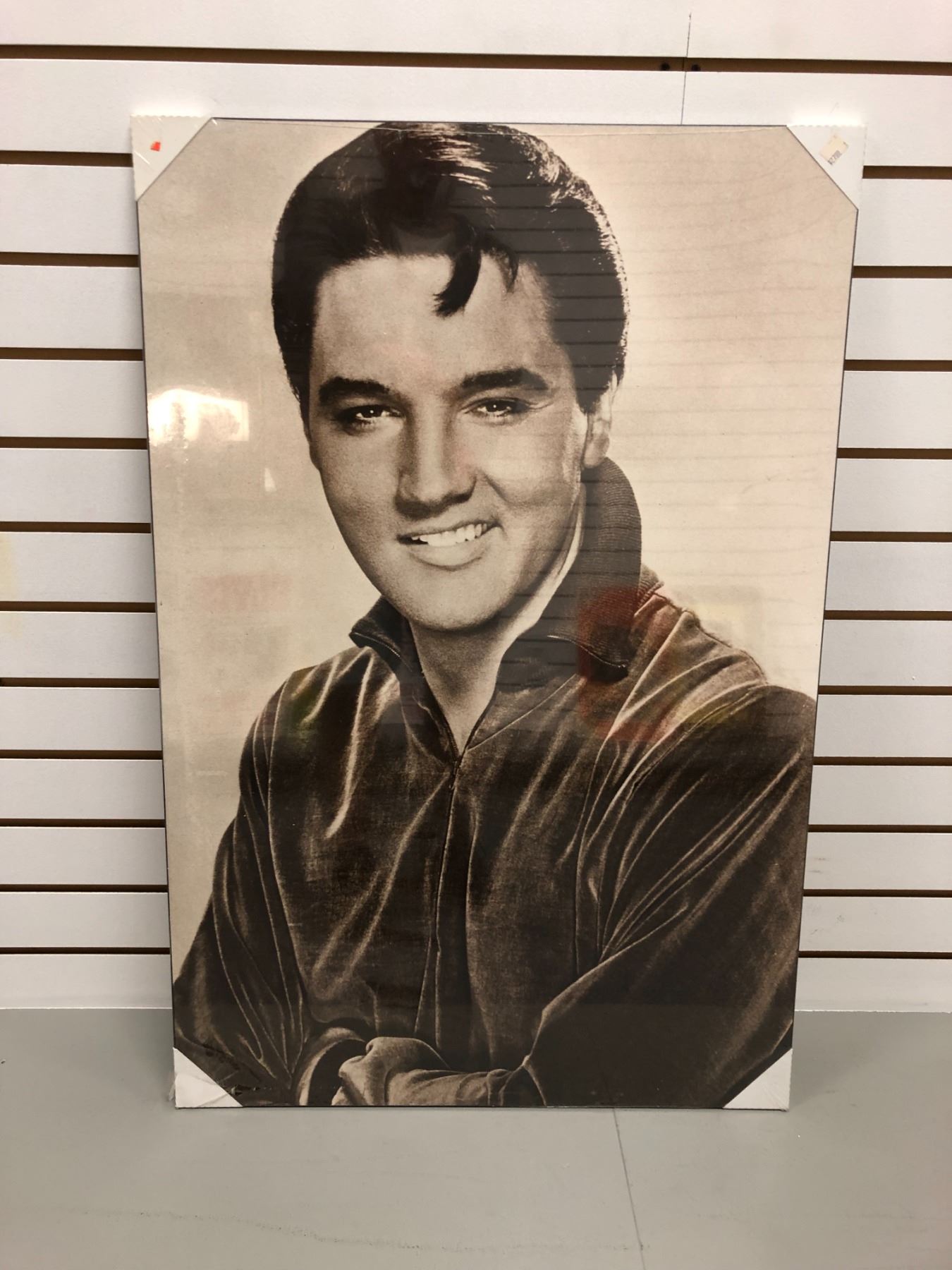 Elvis Presley black & white print on board - 34 1/2in x 23in