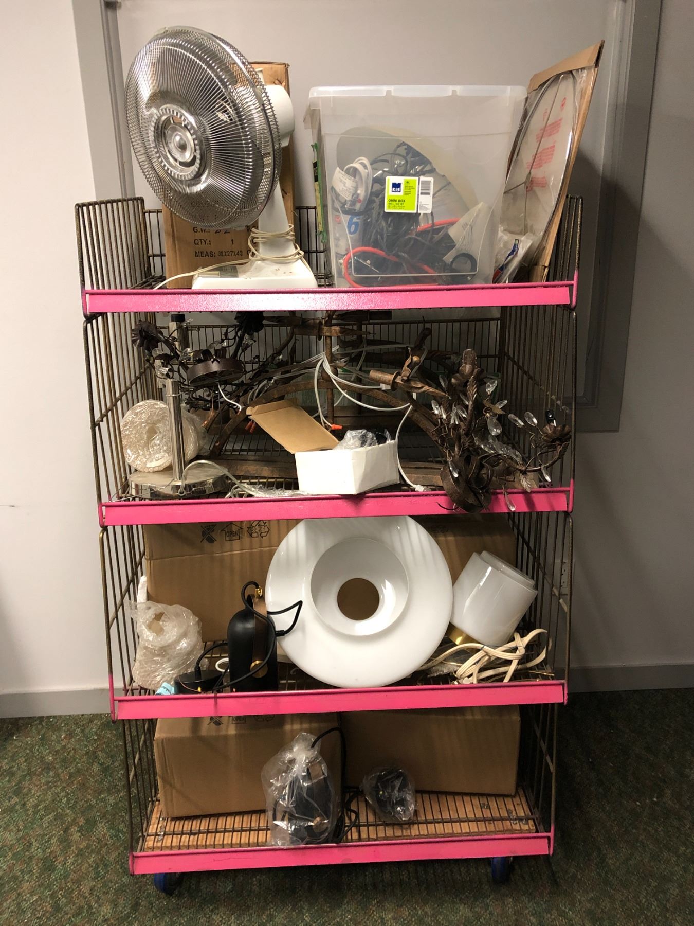 Entire shelf full of assorted wall-mounted lighting fixtures & misc