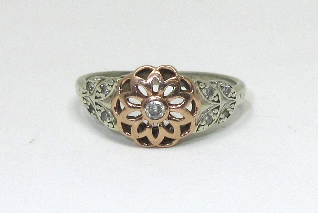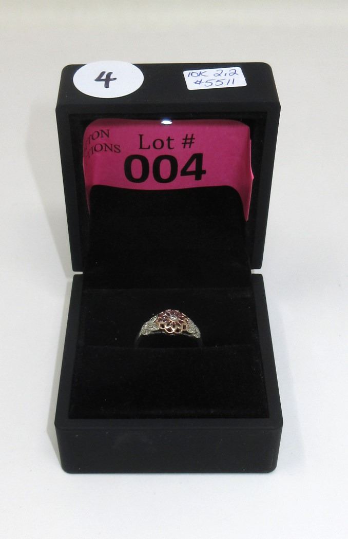 Set with 9 round diamonds. Total ring weight is 2.2 grams