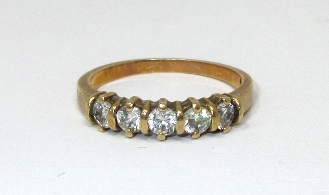 With 5 round cubic zirconia stones. Total weight is 2 grams.