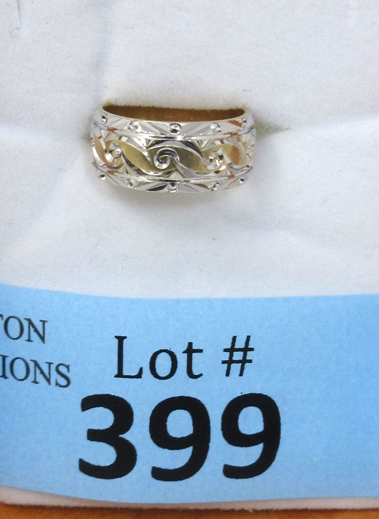 6.2 Grams. Deep etched design. 1/4" wide band. Size 6.