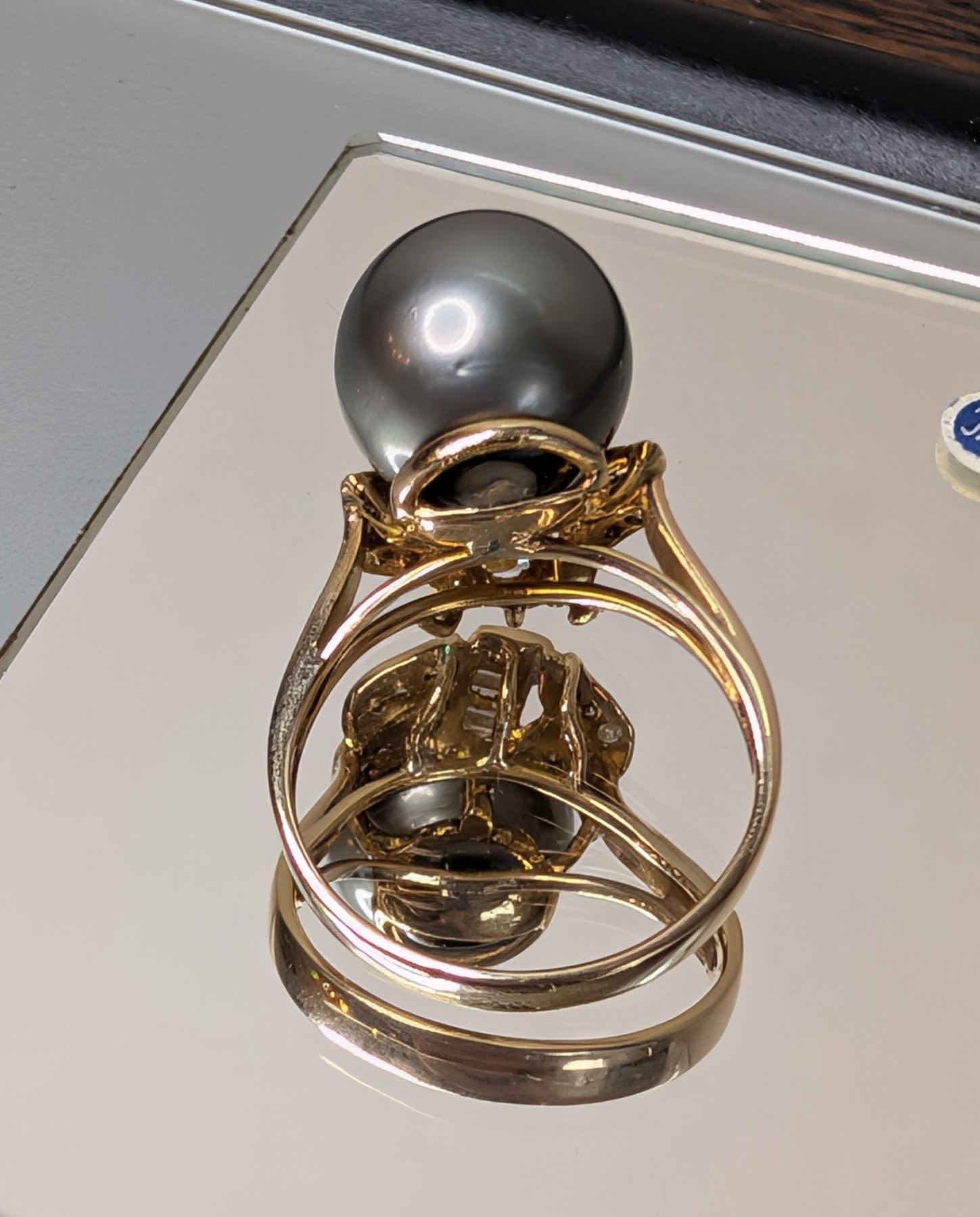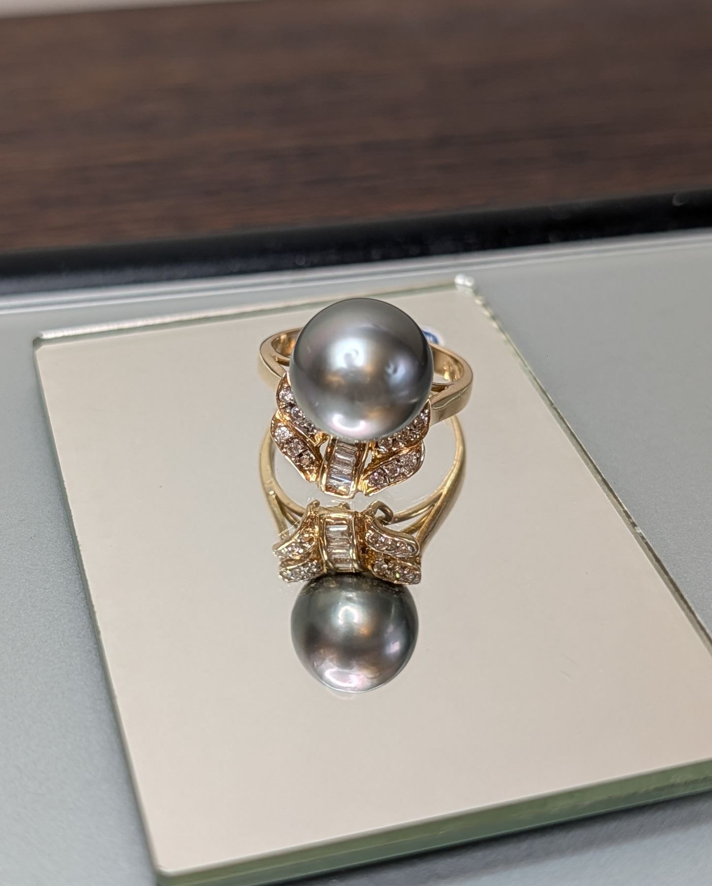 Estate Diamond 12mm Tahitian Pearl 14K Yellow Gold Ring