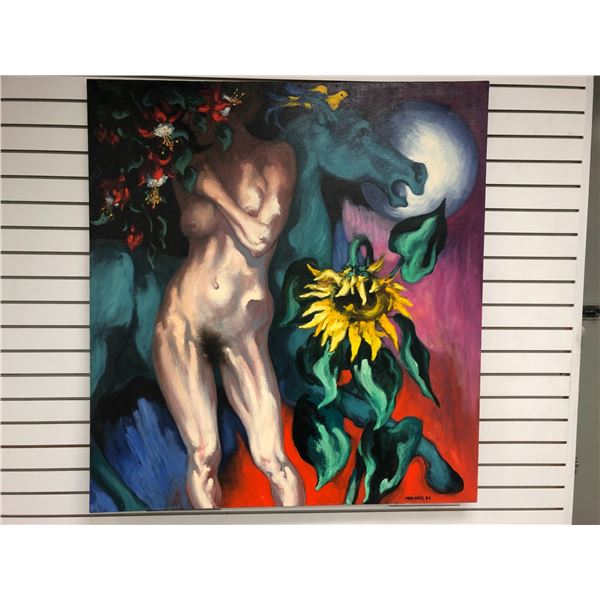 Frank Molnar (1936-2020) - nude oil on canvas painting signed 1989 - 41in x 51in