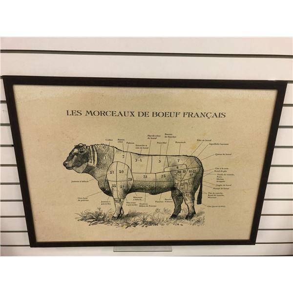 Framed French language cuts of beef butcher print - approx. 32 1/2in x 23in