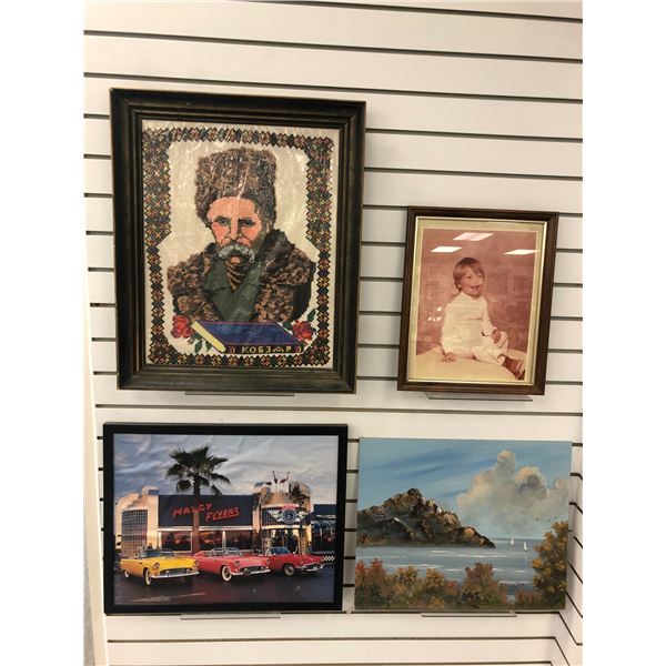 Group of 4 assorted decorative wall hangings