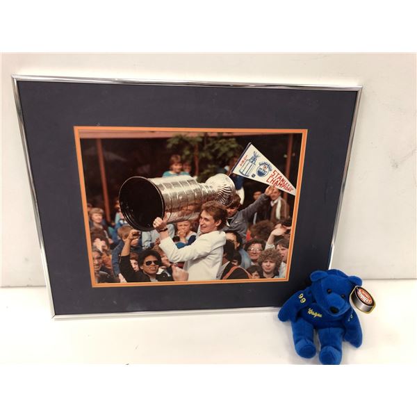 Wayne Gretzky framed Stanley cup print & #99 beanie baby
