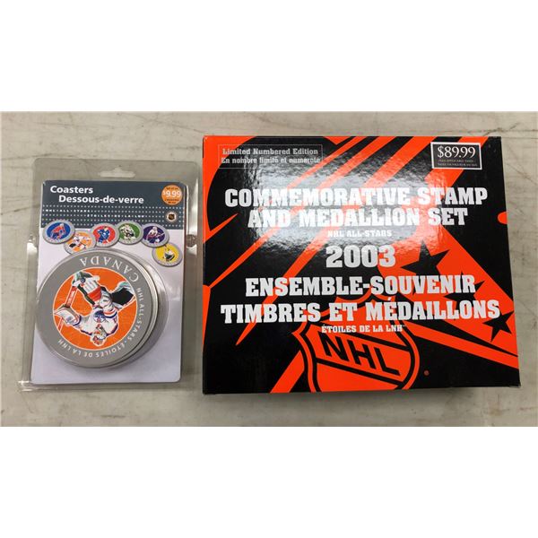 NHL All Stars Commemorative stamp & medallion set & NHL drink coasters set