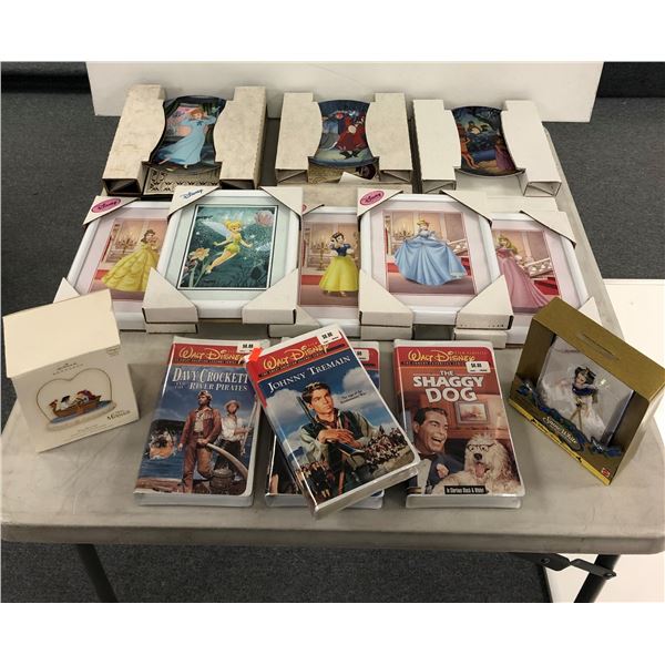 Group of assorted Disney collectibles - 4 factory sealed Disney films/ 5 framed Disney prints/ 3 collector's plates & 2 ornaments