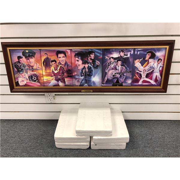 Elvis Presley From Stage to Legend 6 pc. collector's plate set - 5 plates w/ boxes & COA & custom frame (38in x 12in)