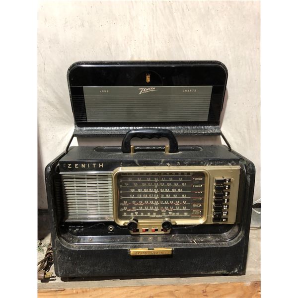 Early 1900's Zenith trans-oceanic wave magnet portable black radio