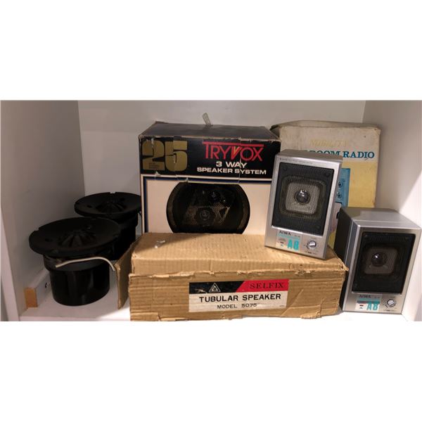Shelf lot of assorted vintage audio file accessories - 8 track tapes/ reel to reel tapes/ collectibl