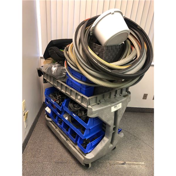 Uline mobile workstation filled w/ assorted medical assist mobility scooter & wheelchair parts & accessories