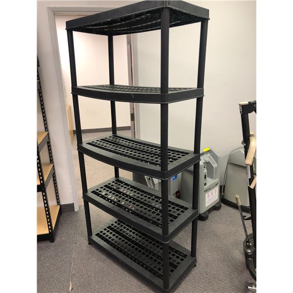 Approx. 5ft. tall x 3 1/2ft. Black plastic shelving unit