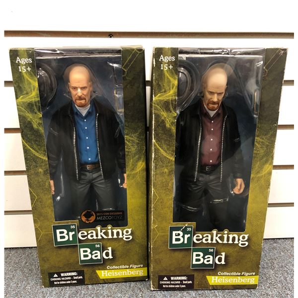 Two Breaking Bad Heisenberg collectible figurines - 13in Blue Shirt Grey Pants & 13in Burgundy Shirt Black Pants
