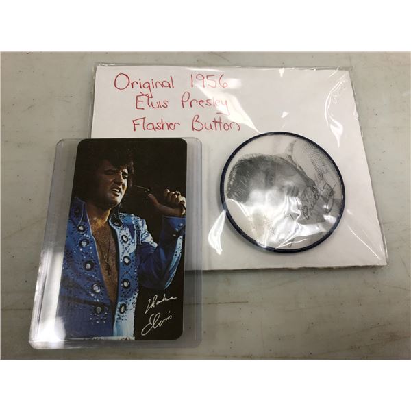 Original 1956 Elvis Presley flasher hologram button & 1973 RCA Elvis collectors' calendar card