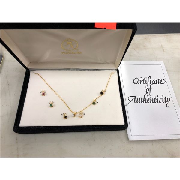Gold necklace w/ 8 authentic gemstone pendants - comes w/ COA (all stones are genuine) - Diamond/ Ru