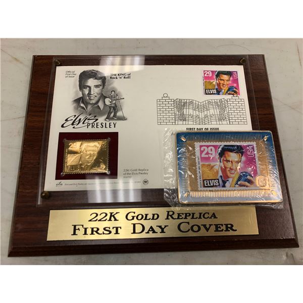 Elvis Presley 22K gold replica First Day Cover & metallic Elvis Presley promotional sample stamp car