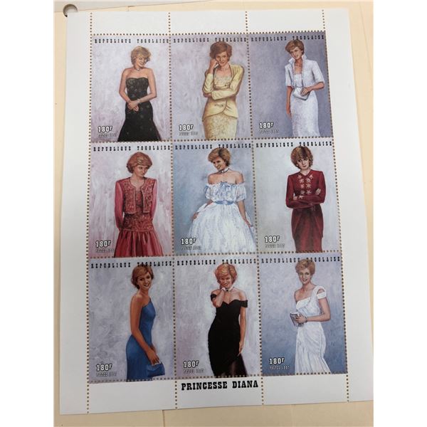Sheet of 9 Princess Diana stamps
