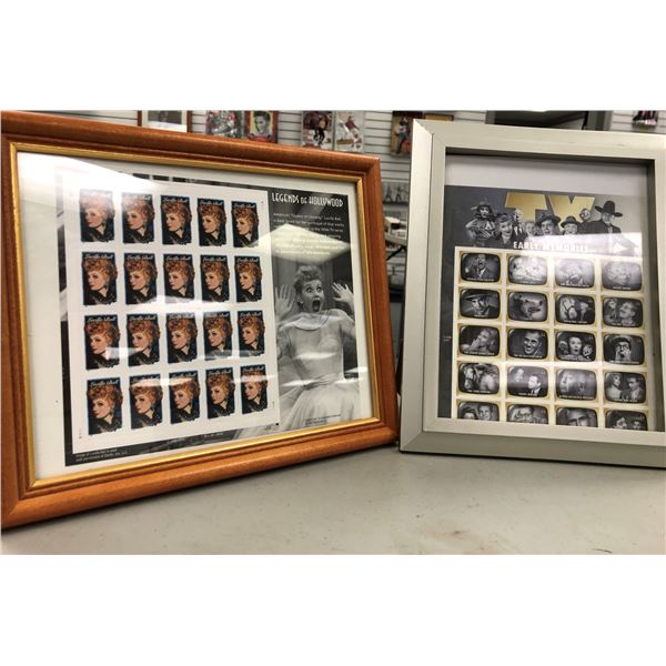 Framed Lucille Ball Legends of Hollywood full sheet of collector's stamps & Early TV Memories framed sheet of collector's stamps