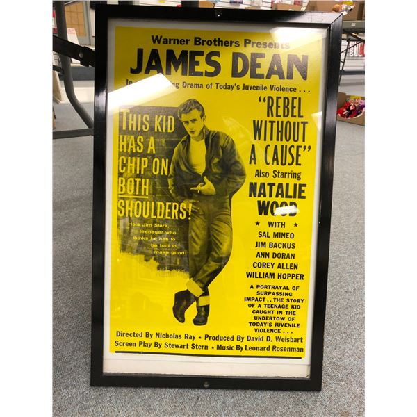 Framed Warner Brothers Presents James Dean "Rebel Without A Cause" movie advertisement