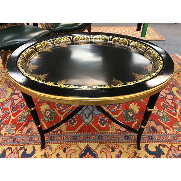 Early 1900's black & gold painted sitting room table