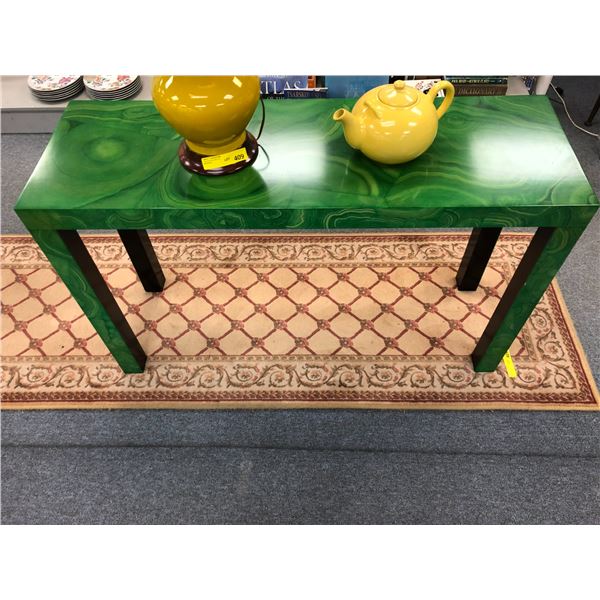 Designer green burl finish hall table