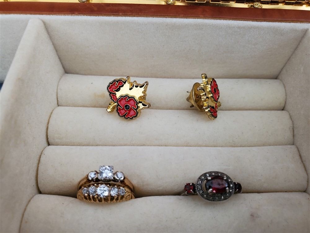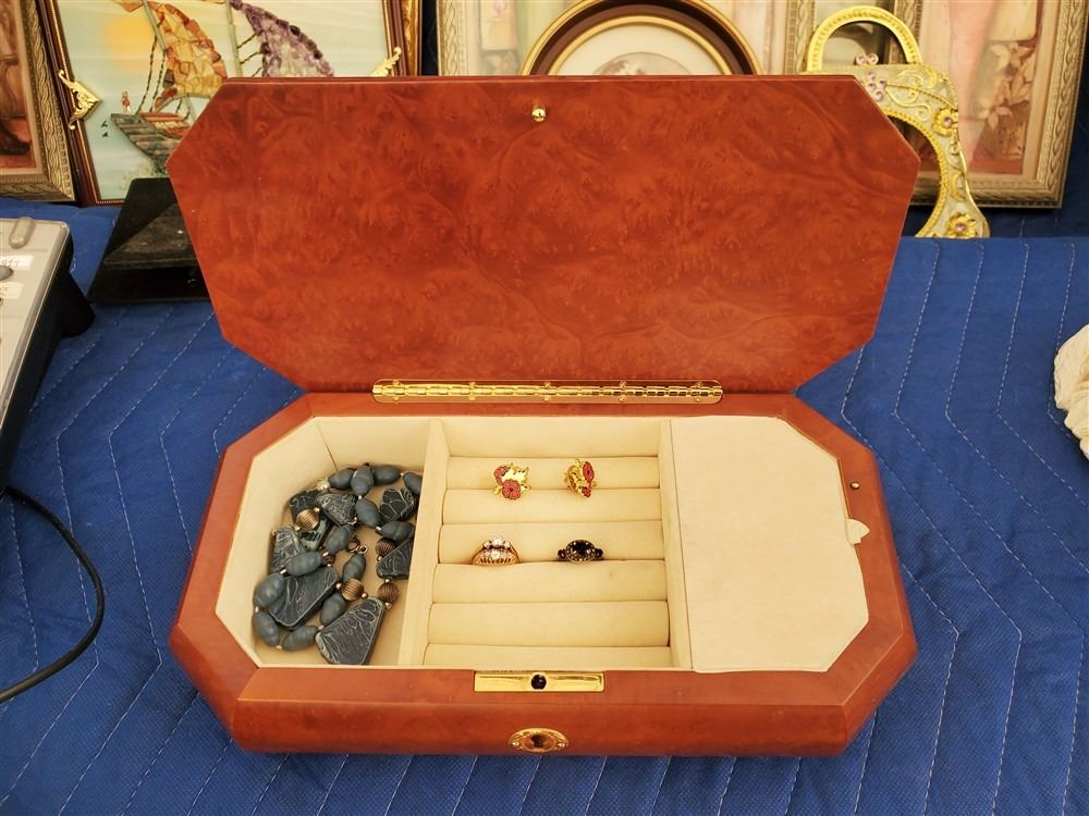 Estate lot Inc. Jewelry Box & Rings - Most Items have not been tested - 17% Buyer Fee. Payment Processed through Live Auction World ( Visa or Master Card ) pick up Saturday, or Tuesday