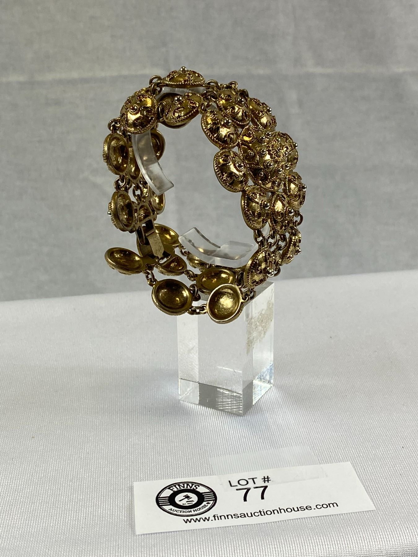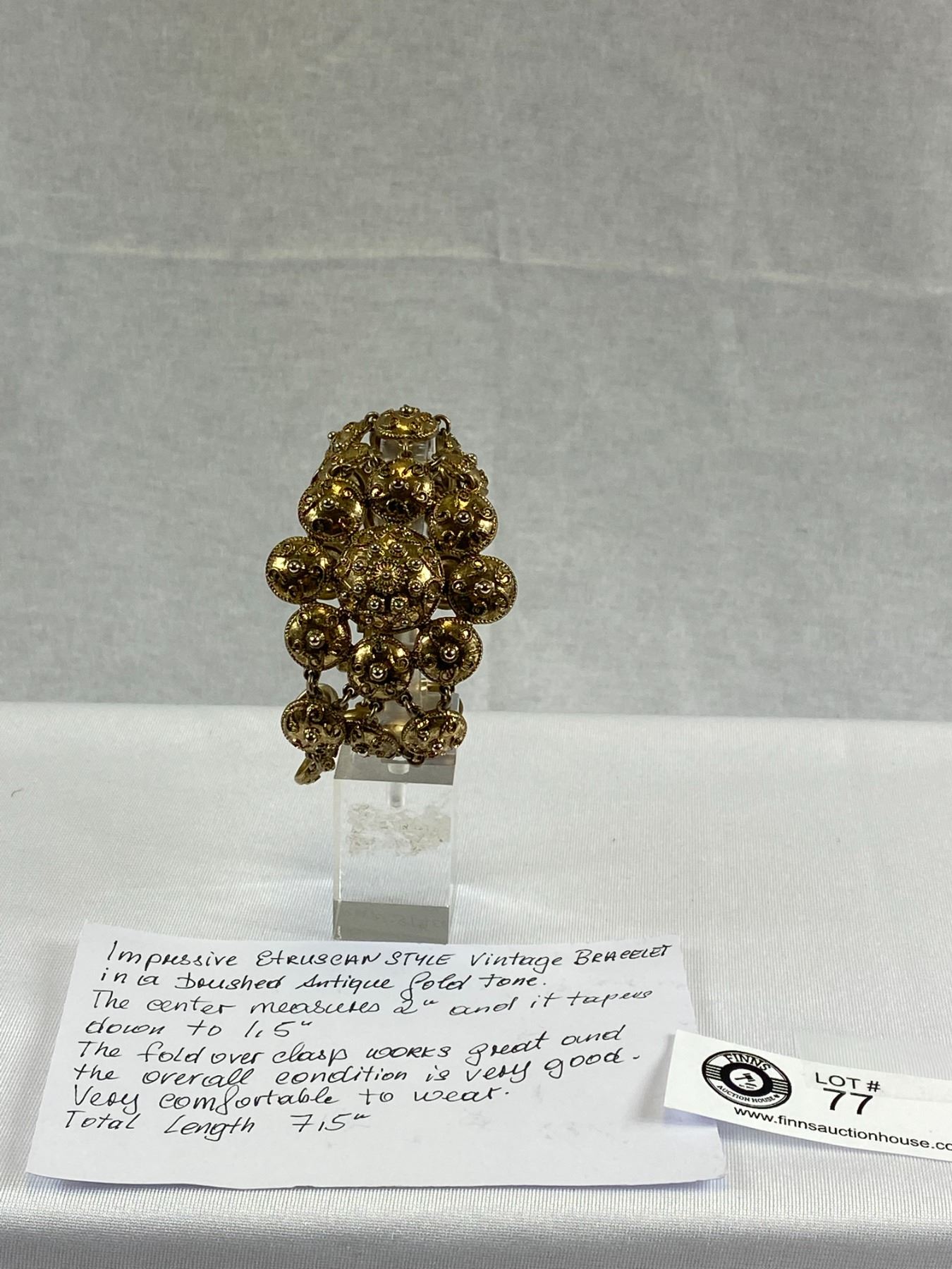 Etruscan Style Vintage Bracelet in Gold Tone total length 7.5''